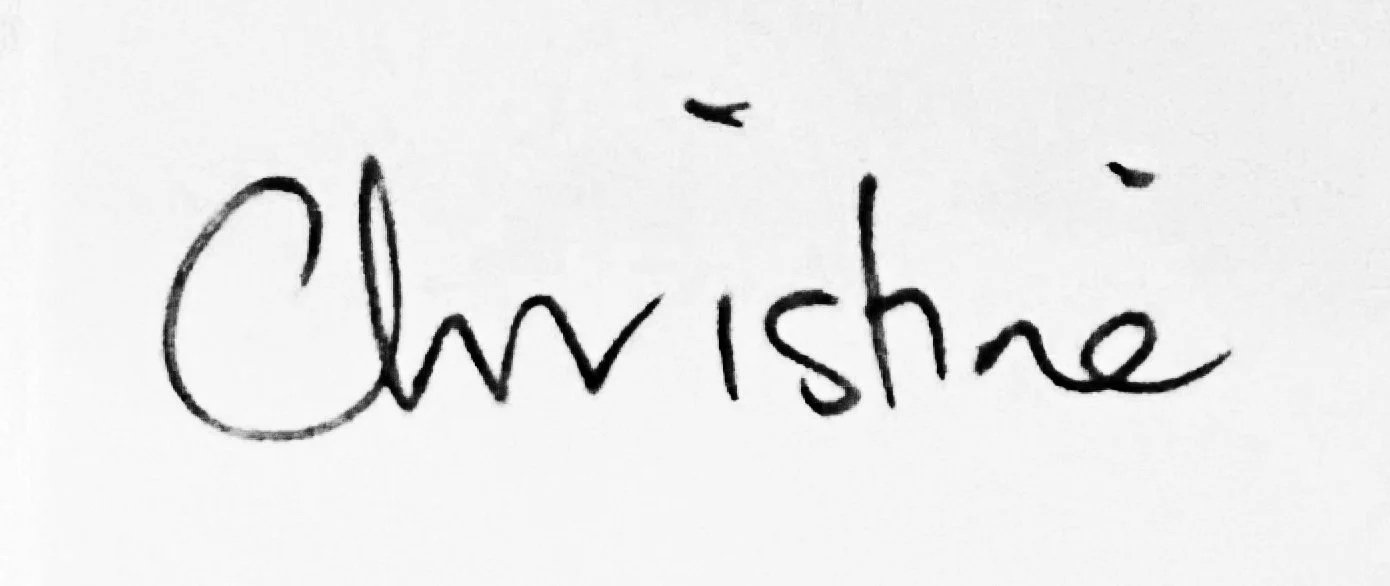 The first priority was to replace the existing logo—created using a combination of Canva fonts—with something more distinctive and more authentically aligned with Christine as a person. This was achieved by refining Christine’s own handwriting and pairing it with a timeless, elegantly spaced serif typeface.